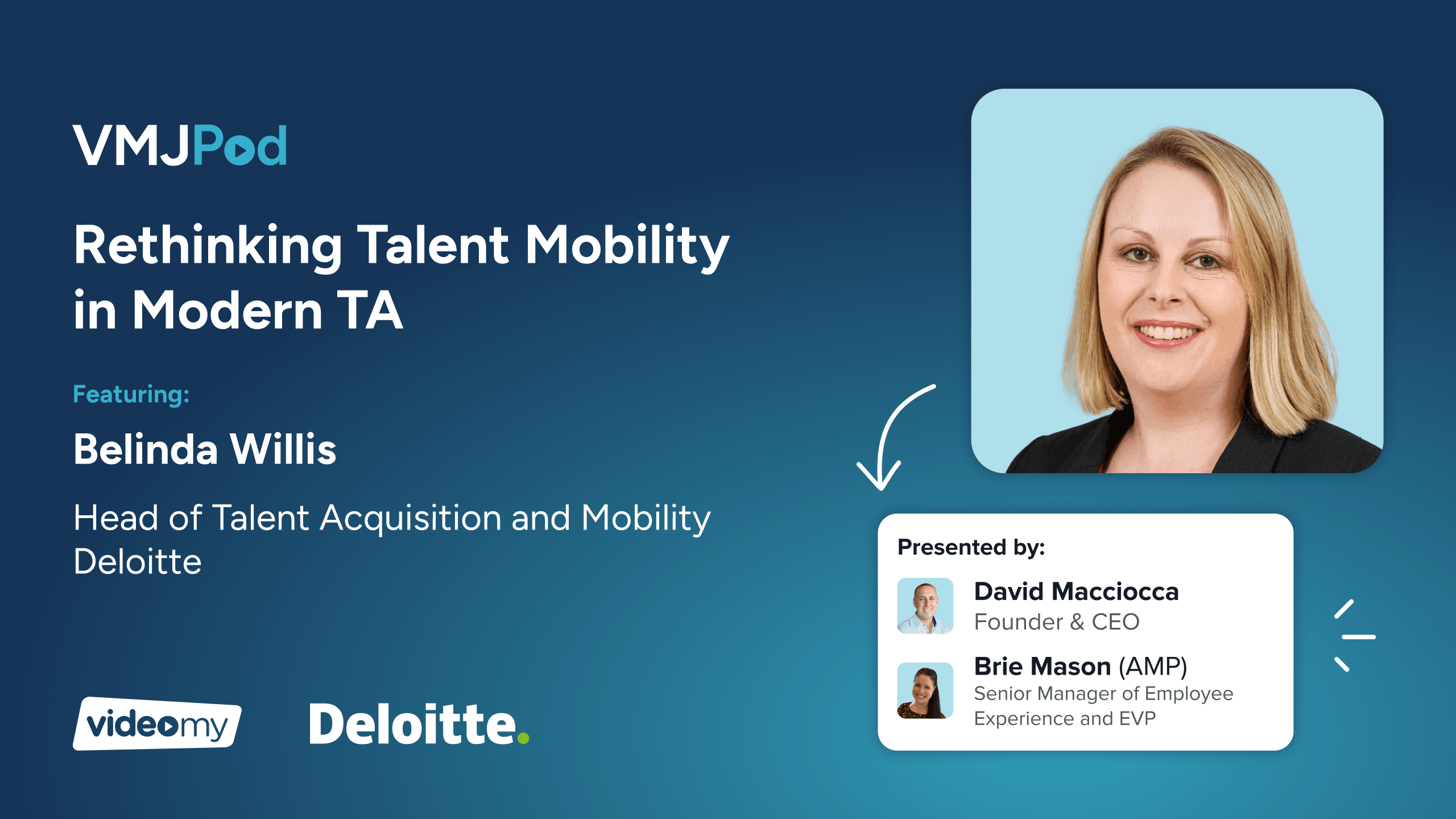 In this Sydney edition of the VMJPod Employer Brand Series, David Macciocca and Brie Mason speak with Belinda Willis, Head of Talent Acquisition and Mobility at Deloitte, about what it takes to design talent systems that allow people to move, grow and stay. Belinda brings a practical view of how mobility, visibility and mindset shape the future of modern TA.